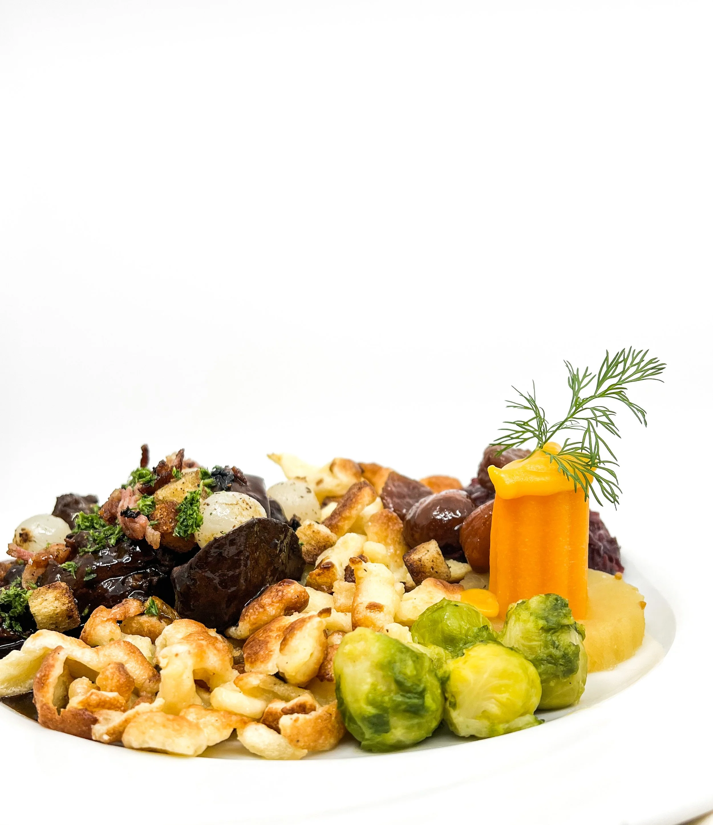 Unsere Speisekarte wechselt mit den Jahreszeiten – aktuell verwöhnen wir Sie mit diversen Wildgerichten aus einheimischer Jagd. Dazu servieren wir hausgemachte Buttersptäzli und Herbstgemüse.